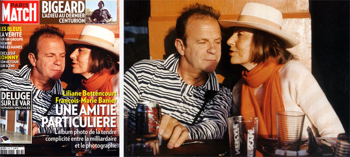 (4) Couverture Paris-Match du 23/06/2010. (5) François-Marie Banier, Liliane Bettencourt, photo amateur, mai 2006.