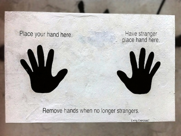 L’image de la semaine est cette affiche, ou cette œuvre street-art interactive ! Récemment imprimée et fraîchement collée dans les rues de New York, personne ne sait qui l’a créé et diffusé mais sa symbolique est très forte. Avec les questionnements actuels sur les “étrangers”, je serai ravi de voir en France une affiche comme celle-ci qui invite les gens à se rencontrer, se découvrir, à ne plus se craindre.