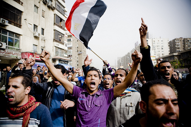 Les manifestations en Egypte se sont développées beaucoup plus rapidement que celles de Tunisie, avec des manifestations massives qui explosaient dans tout le pays le 25 janvier. Les médias du monde entier couvraient l’histoire de manière intensive dès le 28 janvier lorsqu’il est devenu évident que les manifestants ne respecteraient pas le couvre-feu imposé par le  gouvernement et continueraient à occuper le centre du Caire.