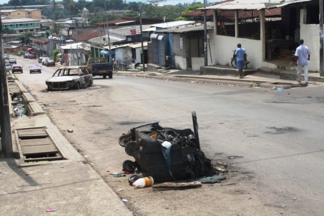 Voitures brûlées à Atong Abè, Libreville, le 2 février