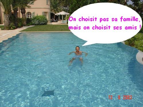 Certains hommes politiques français baignent dans le liquide, nous dit cette image sur un mode allégorique. Le pauvre Copé, qui a bien le droit de se baigner dans une piscine en plein été, se retrouve ainsi comme un gardon pris dans le vivier d’un pêcheur de gros. Il illustre une situation qui se fait jour sans le savoir. Il offre aux spectateurs qui se sont invités, par voie de presse, dans l’intimité qu’il entretient avec celui qui le photographie, une magnifique illustration des contacts “inappropriés” (pour reprendre cet anglicisme clintonien remis à la mode par DSK) entre les hommes politiques flirtant avec les sommets de l’Etat et les eaux claires mais troubles de la finance internationale. A tort ou à raison, on le saura peut-être un jour.