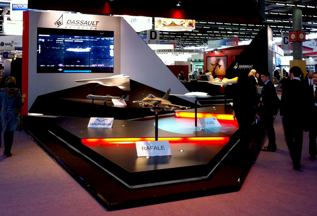 Des drones qui ne sont pas armés, contrairement aux produits de Dassault. Devant le grand espace de l’avionneur à Eurosatory, trônaient les réalisations du constructeur français, avec en pointe le Rafale (le célèbre avion de chasse qui ne parvient pas à s’exporter) et juste derrière les avions de combat sans pilote :  nEUROn construit avec le Britannique BAE Systems, Voltigeur avec l’israélien IAI…